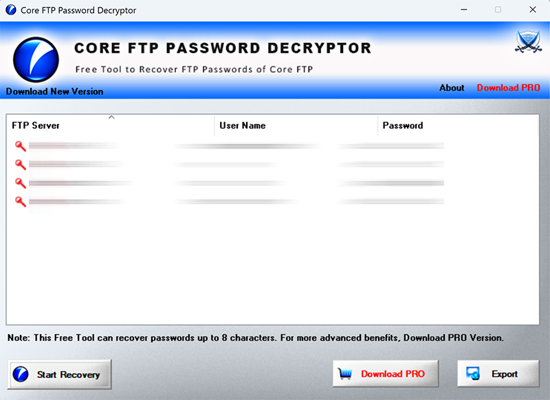 Core FTP Password Decryptor is not a hacking tool as it can recover only your stored passwords. It cannot recover the passwords for other users unless you have right credentials. Like any tool its use either good or bad, depends upon the user who uses it. However Author or SecurityXploded is not responsible for any damage caused due to misuse of this tool.